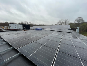 374,4kWp öst/väst system upplutat 10* förankrat med ballast