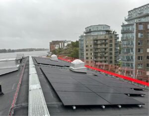 197,54 kWp. Ett utmanande och lärorikt projekt då husen står på pelare i vattnet.